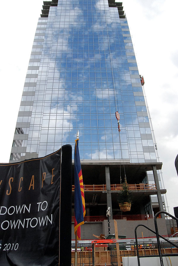 Downtown Phoenix’s newest addition, CityScape, celebrated the “Topping Out” of their 27-story Phase I office tower yesterday.