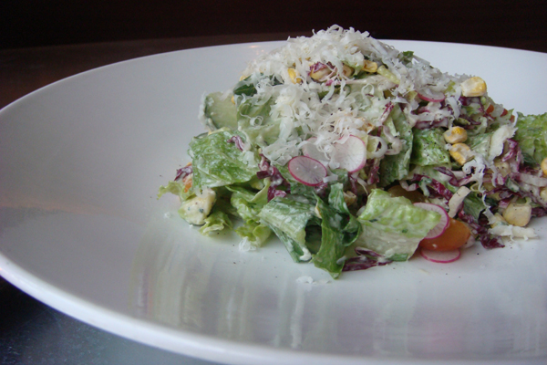 Appetizers include a sweet corn chowder ($6), baked goat cheese with a walnut pesto ($8) and a pile of crispy fingerling potatoes with lemon aioli for dunking ($6). An equally brief trifecta of salad offerings round out the starters — romaine hearts and summer vegetables tossed in a salty, tangy buttermilk dressing ($8); a forbidden “rice bowl,” with varied vegetables in a lemon soy dressing ($15); and a meal-sized wild salmon salad with beets, celery, herbs and crushed potatoes ($18).