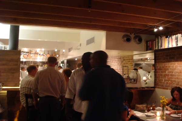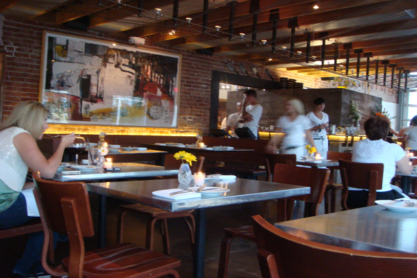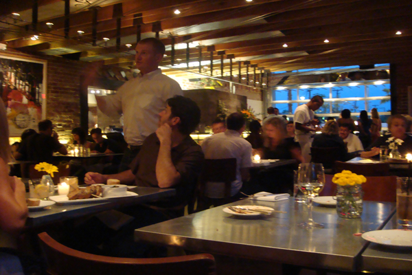St. Francis presents an interior well designed, modern and warm. Exposed (original?) brick walls exist throughout, seemingly unfussed, accented by strategic uplighting that brightens as nighttime approaches. The kitchen, though not unnecessarily exposed, is open, bright and efficiently located near the main entrance of the restaurant — providing an attractive bookend to diners’ experiences, entering and exiting. It displays a bustling kitchen brimming with sights, aromas and the controlled, hurried pace of a well-run operation.