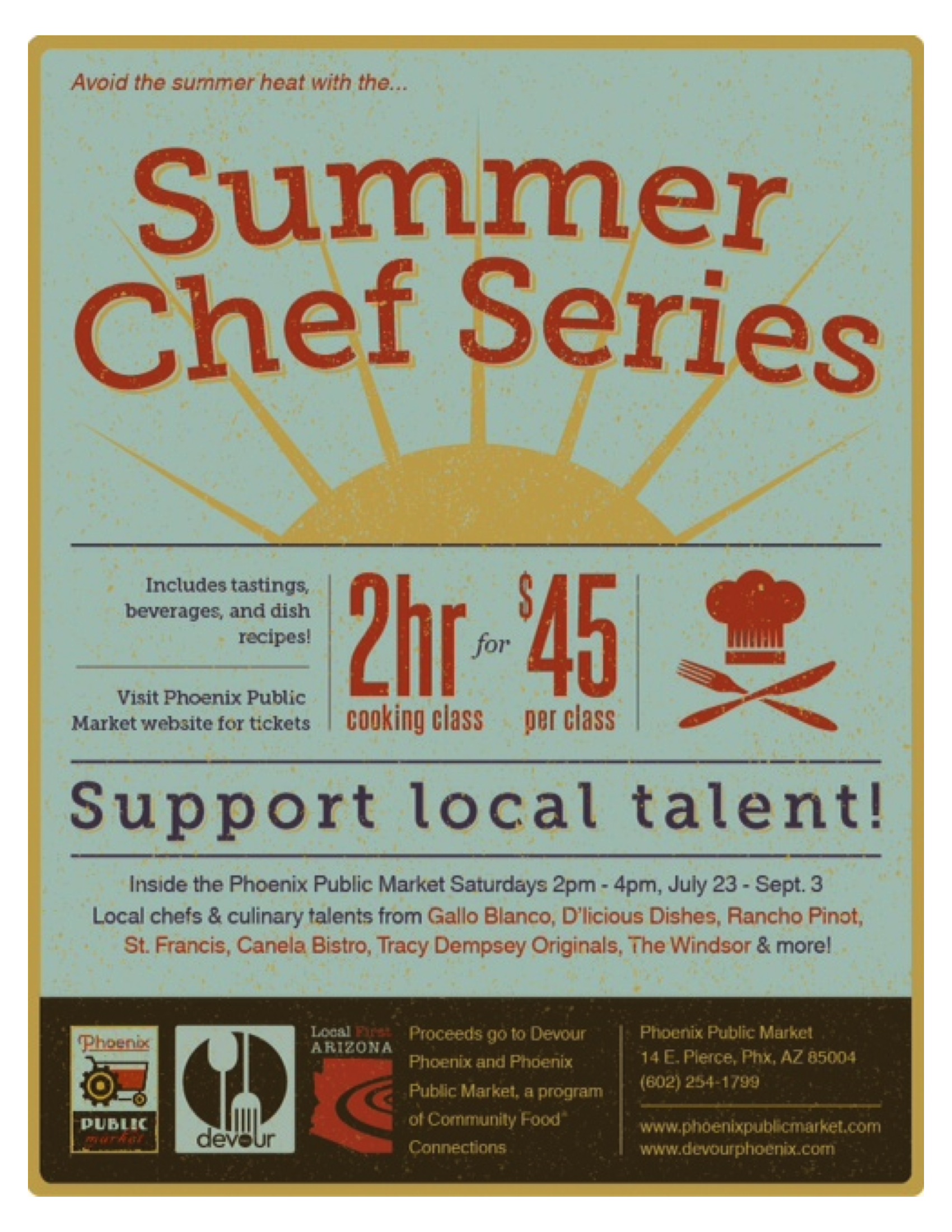 and the Phoenix Public Market. The organizations have teamed up to bring you quality face time with some of the Valley’s finest chefs at their Summer Chef Series cooking classes.