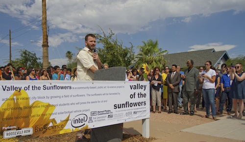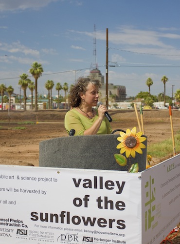 The Valley of the Sunflowers project was made possible through the support of Intel, City of Phoenix, BioScience High School, Sycamore Farms, Arizona State University’s Global Institute for Sustainability and the Herberger Institute for Design and the Arts through the ASU Art Museum and the Desert Initiative, University of Arizona, Hensel Phelps Construction, DPR Construction, APS, USDA Natural Resources Conservation Service and Blue Media.