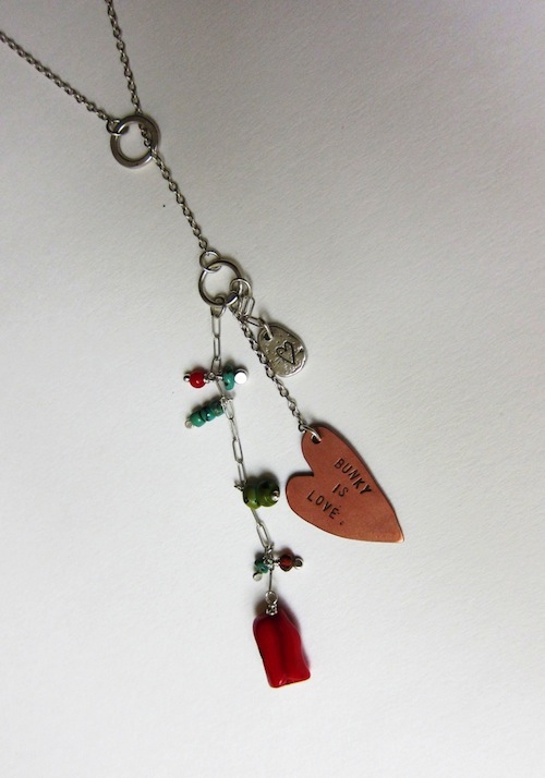 The collection features the classic Bunky Heart Sterling Necklace (pictured below) and will rotate in other designs every so often. The classic necklace is made from brass, red enamel and sterling silver.