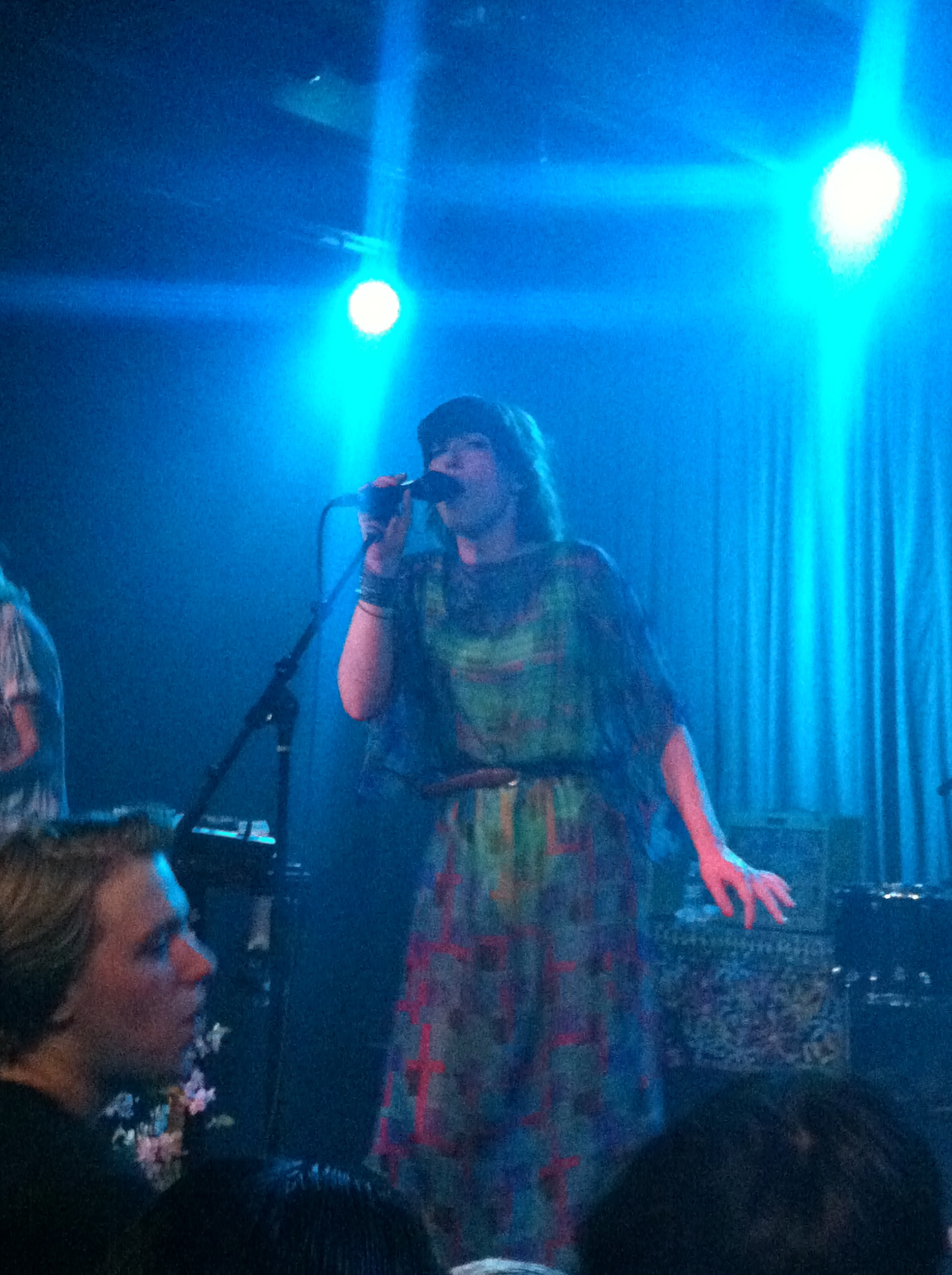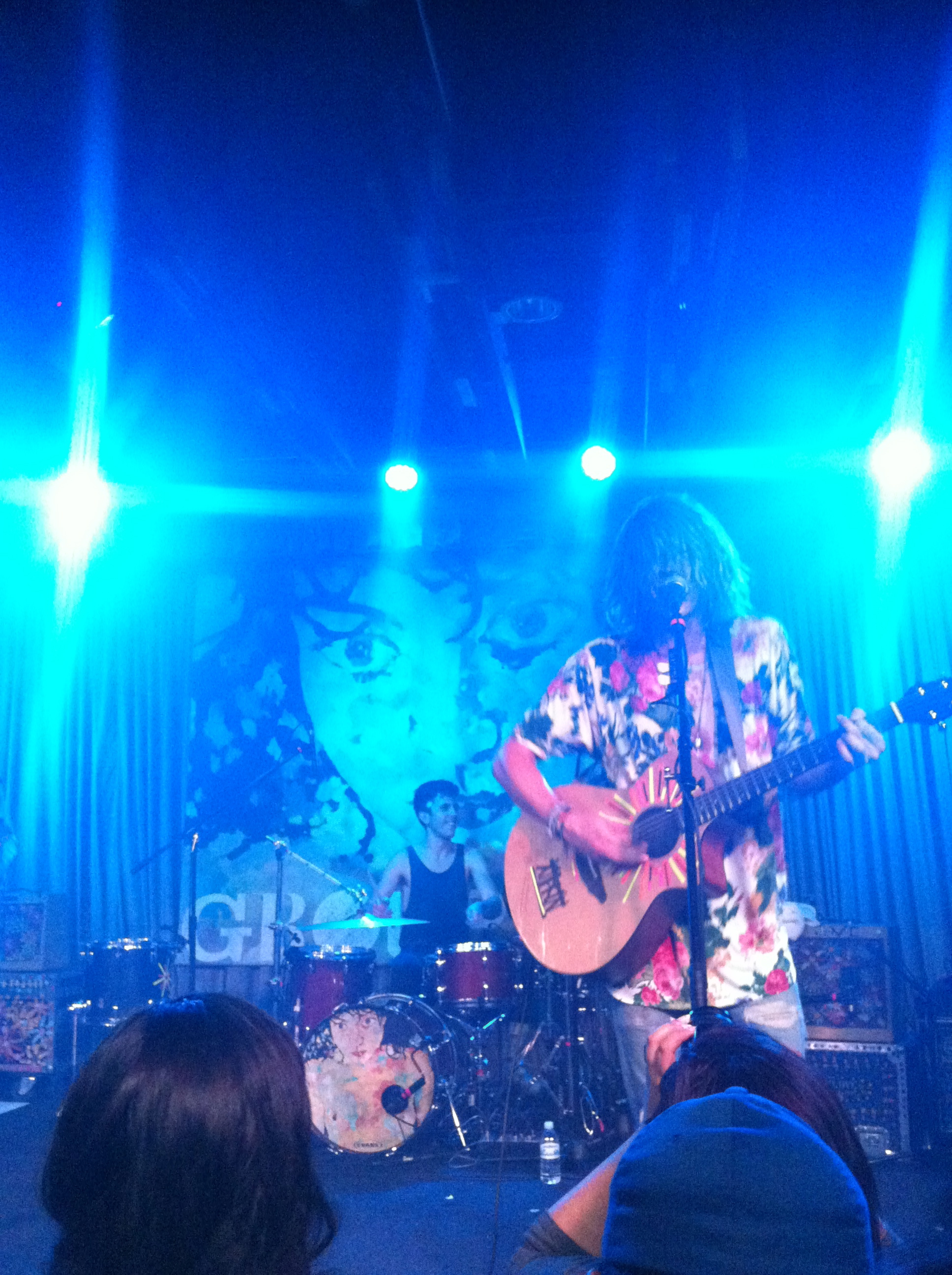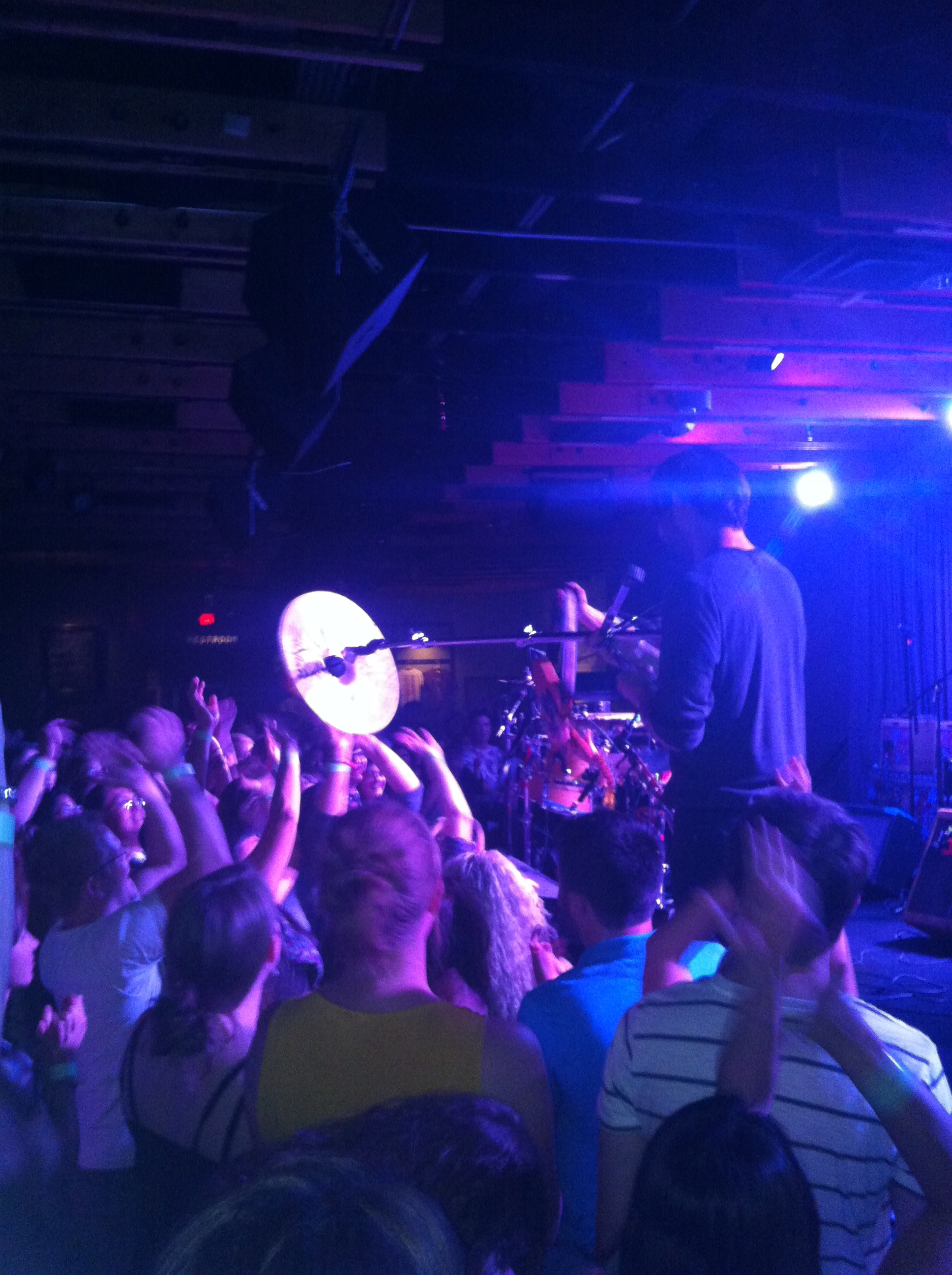 Atmosphere: Like a music festival’s after-party. Hot, sweaty, and I hadn’t yet seen the venue as packed and energetic as it was last night. There were undeniably a small group of die hard fans that had been to Coachella (probably both weekends) and seen both Givers and Grouplove there. The crowd was also much younger than the Crescent’s norm — the show was 16+, and I’d say the age range capped off at about 25. Except for the 40-something guy dancing his long, curly hair off in front of me. The young crowd fed off the energy from the bands, with most kids dancing or at least singing along the whole show. Givers were the most animated band I’d seen on the Crescent’s stage so far — until Grouplove came on.