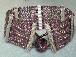ME: I primarily work with semiprecious stones, Swarovski crystals, Czech glass and Japanese seed beads; those are primarily where all the color comes from. As far as metals are concerned, I have silver, gold, copper, brass and gunmetal. It is just as important to me as an artist that the inside materials are the excellent quality because I want to make pieces that are durable and could be heirlooms in the future. Especially when we are dealing with woven pieces; the inside thread is silk like on your skin but is so strong that you could cut your finger with it if you tried to break it.