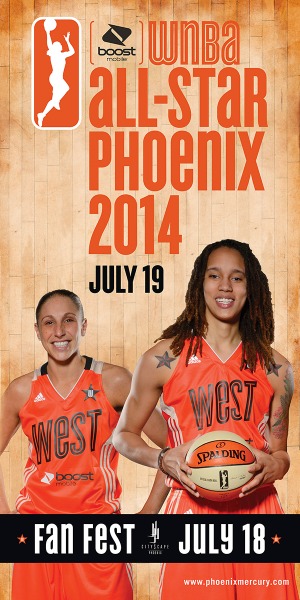 As host of the Boost Mobile WNBA All-Star 2014 game, the Phoenix Mercury invites Valley residents and visitors to attend All-Star Fan Fest on Friday, July 18 at CityScape in downtown Phoenix, from 4 – 9 p.m. The event is free and open to the public.