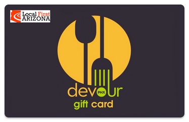 Devour Phoenix, a city-wide coalition of independent restaurants operating under the Local First Arizona (LFA) umbrella, has launched an eGift card that is redeemable at over 25 of its member restaurants. The Devour eGift card can be purchased online and can be printed, emailed as a gift, or redeemed from a mobile phone. The Devour eGift cards are available for purchase at $10, $25, $50, or $100 values.