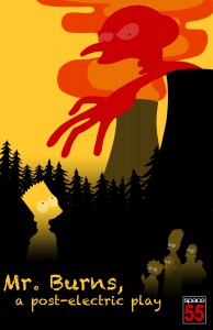 On the tiny, intimate stage of Space 55, director Charlie Steak and the cast of Mr. Burns, a post-electric play create a surprisingly convincing environment of impromptu community clinging to the familiar after the unthinkable occurs.