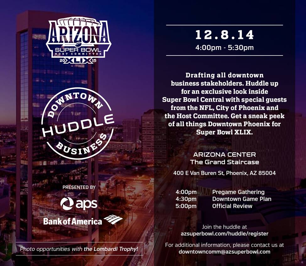 Greater downtown Phoenix businesses are invited to learn more about the preparation for Super Bowl XLIX. As the NFL’s Pro Bowl and Super Bowl