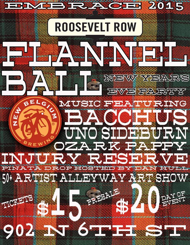 The inaugural New Year’s Eve Flannel Ball & Art Show is “plaidly” brought to you by Lawn Gnome Publishing, 909 Housing Collective, Roosevelt Growhouse & GrowOp, and Roosevelt Row CDC.