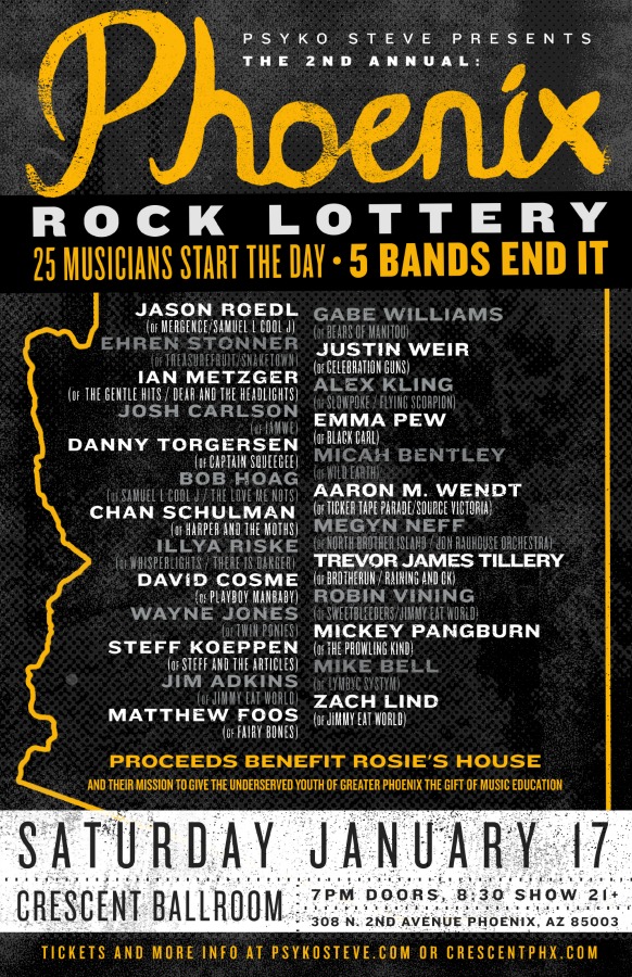 The 2nd Annual Phoenix Rock Lottery will be held on Saturday January 17th at the Crescent Ballroom in downtown Phoenix