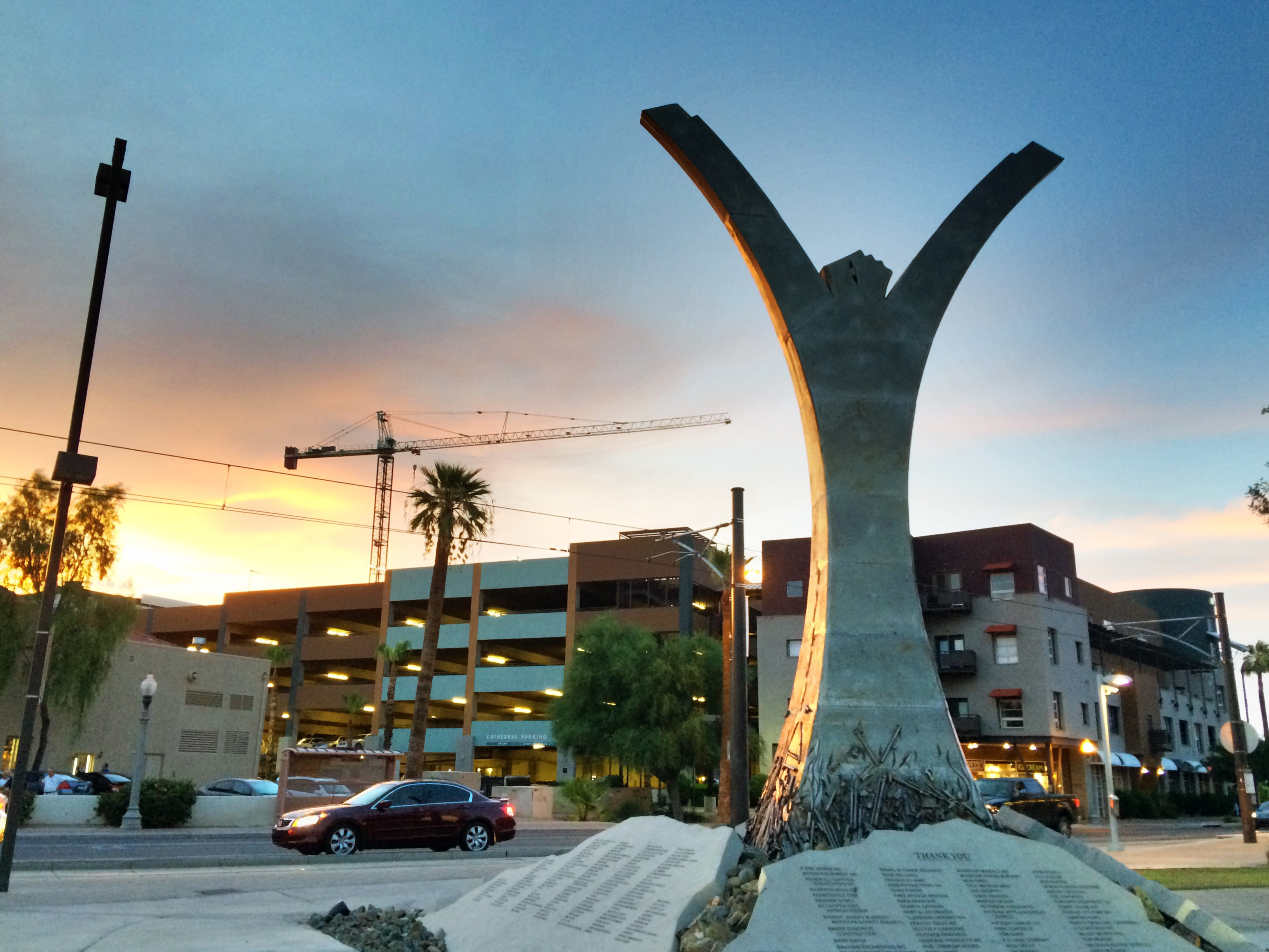 “Release the Fear,” which serves as the second stop along the walk, is a sculpture by local Phoenix artist Robert Miley. According to the sculpture’s inscription, it is comprised of 8,000 pounds of weapons used in violent acts throughout Arizona and it took 10 years to source funding for the project.