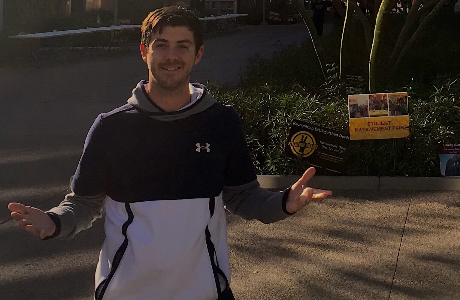 When I’m feeling energized and active, playing basketball, golf and touch football in the park are ways I enjoy spending my free time. When the grind of class has me feeling overworked or fatigued, I usually find a good movie to see or a happy hour to attend. I find the downtown area meets all these needs, which is great.