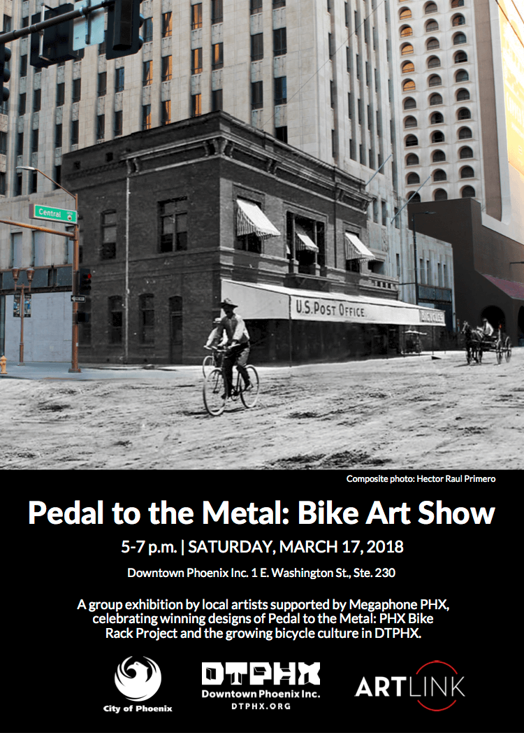 In December, 28 local artists submitted their portfolios to the Pedal to the Metal: PHX Bike Rack Project, an urban arts initiative spearheaded by Downtown Phoenix Inc., Artlink