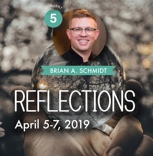 Titled “Reflections,” the program returns to the Chorale’s roots with John Rutter’s jazz-inflected Birthday Madrigals and other repertoire chosen by conductor Brian A. Schmidt. Of four candidates chosen as finalists for the Chorale’s artistic director position, Schmidt is the last to appear with the choir in a season President & CEO Jen Rogers describes as “such a ride and so much fun.”