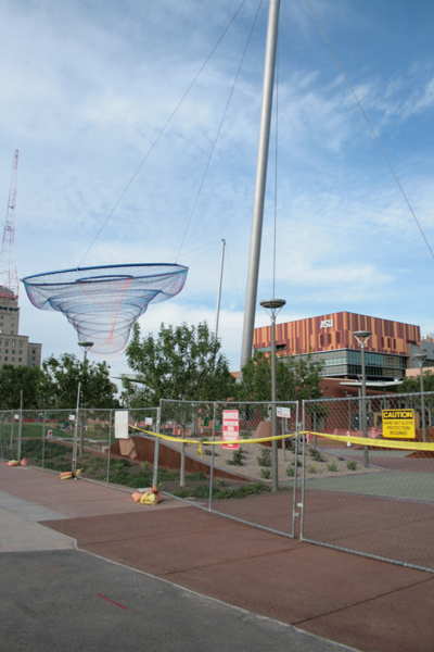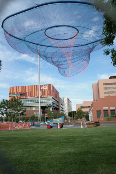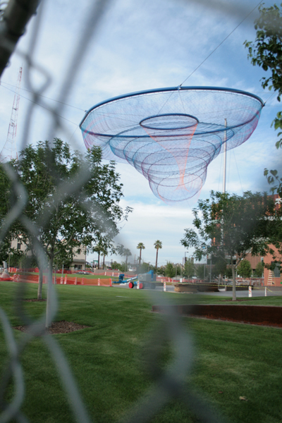 The Civic Space, nestled into 2.77 acres in the heart of downtown Phoenix in an area bounded by First and Central avenues and Van Buren and Fillmore streets, offers residents, workers, ASU students and downtown visitors a park with unique urban design, sustainable construction and operational features, and a landmark public sculpture by artist Janet Echelman.