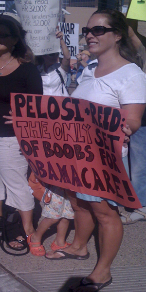 Of the chanting, sign-carrying and gun-toting crowd, I was able to only find one protestor who was actually concerned with what Obama was in Downtown Phoenix to talk about.