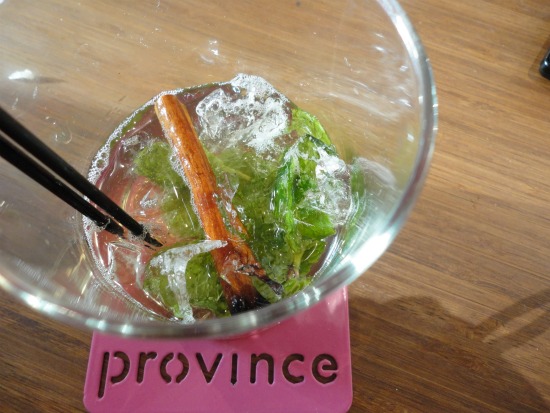 An indulgent starter to Province’s cocktail journey is the Smart Money. A chilled makeup of muddled mint and fresh pear mixed with the floral, weightless attributes of white whiskey (a young, largely steel-aged, wheat-based whiskey) and the sweet warmth of bonded apple brandy, the drink is then polished with the stir of a flamed cinnamon stick. It’s like a mint julep laced with added spice, emboldened with the depth of fruit.