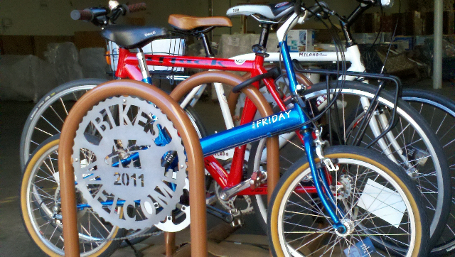 The first of the unique racks is being installed on Monday, February 6, 2012 at Carly’s Bistro, 128 E. Roosevelt, Phoenix. Installations are also planned for Blooming Rock, Cibo, Tucan Properties, Harder Development, Advantage Logistics SW, Buttertoast Boutique, Co+Hoots, Dukes Sports Bar, The Centers for Habilitation, and Stadium Lofts HOA beginning on Wednesday, Feb. 8.