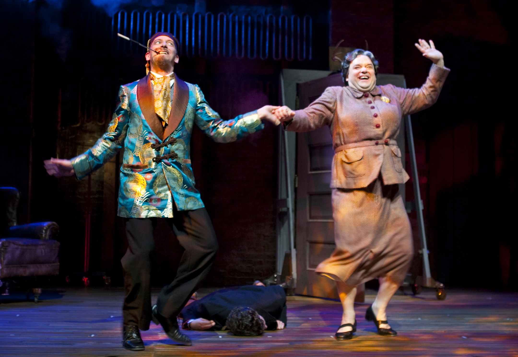 There is excellent physical comedy throughout this madcap story of an itinerant English Gentleman caught up in the chase to find spies in his midst and the damsels who continuously cross his path along the way. The cast has a lot of fun playing with references to other Hitchcock movies, including most notably, North by Northwest. The male lead, Robert O. Berdahl, comes as close to filling the large footprint of Cary Grant as I’ve seen. The supporting cast – one female and 2 male actors – split amongst themselves numerous roles as the plot darts around pre-War Britain. There’s even a little Borscht Belt thrown in. The train chase scene done on top of a few boxes is a definite must-see!
