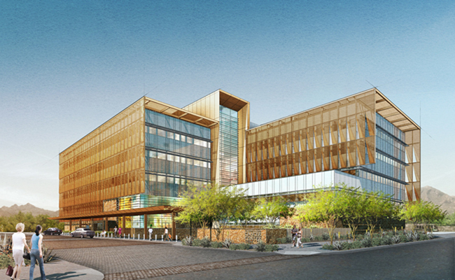 The construction is the latest project for the Phoenix Biomedical Campus, which is anchored by the UA College of Medicine – Phoenix and includes the Translational Genomics Research Institute. The university colleges of public health, pharmacy and nursing all have activities on the downtown Phoenix along with programs from Northern Arizona University’s College of Health and Human Services.