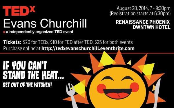 When: Thursday, August 28, 2014 – TEDxEvansChurchill If You Can’t Stand the Heat, Get Out of the Kitchen