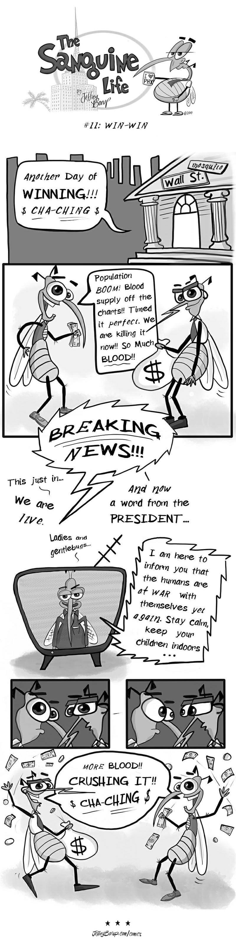 The Sanguine Life is a comic strip about a family of mosquitos, feeling the feels and dreaming the dreams in Phoenix, AZ