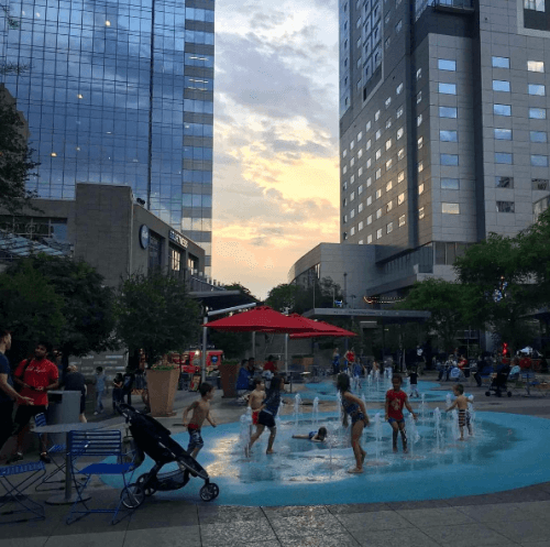 On the second Friday of every month, guests are encouraged to run around the splash pad and grab some dinner with the family before watching a feature film on the big screen at the outdoor movie theater in Patriots Park.